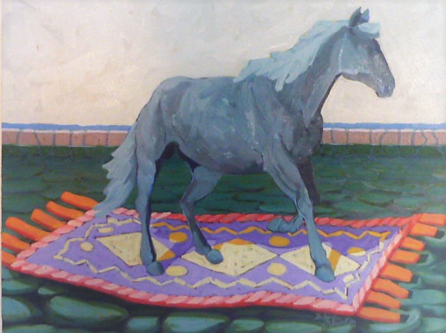 Cavalla su tappeto galleggiante - olio su tela - 50 x 40 - 1998