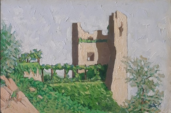 MONETA - la Torre - olio su cartone telato 20 x 30 - 1994 - collezione privata