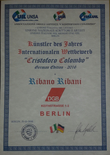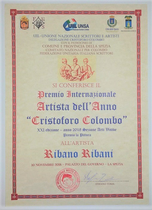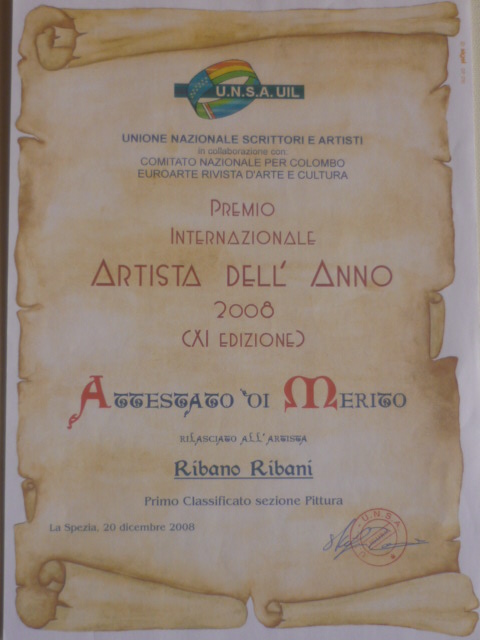2008 | U.N.S.A. UIL in collaborazione con Comitato Nazionale Per Colombo Euroarte rivista d’arte e cultura | Premio Internazionale Artista dell’Anno 2008 (XI Edizione) – Primo classificato sezione Pittura – Primo Premio Assoluto Artista dell’Anno |