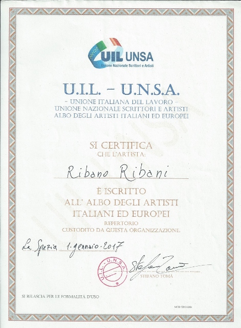 2008 | U.N.S.A. UIL– Unione Nazionale Scrittori e Artisti | Rilascio Attestato di iscrizione all’Albo degli Artisti Italiani ed Europei |