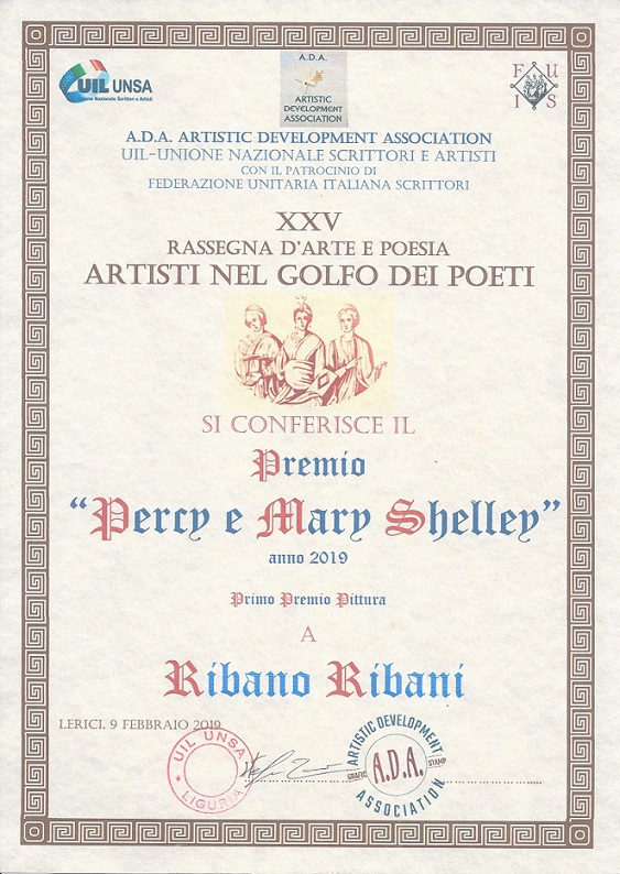 1989 | La Spezia | Ribani espone a La Spezia nella Collettiva di Pittura di Primavera Premiato con possibilità di adesione gratuita alla Mostra di Pittura dell’anno successivo |
