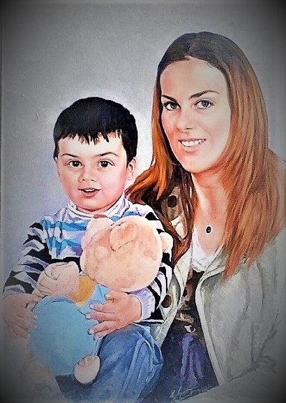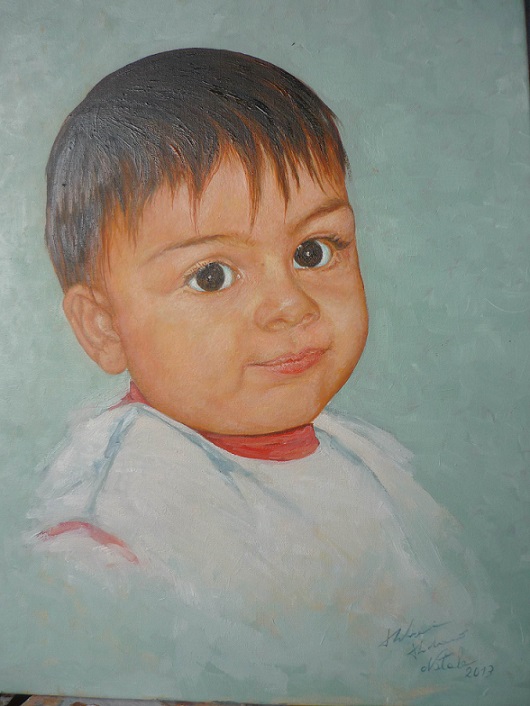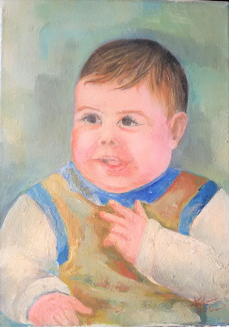 Tania a 3 mesi - olio su tela 25 x 35 - 1976 Mamma con il suo bambino - olio su tela -50 x 70 - 2016/2017 Riposo - marmo - 43 x 22 x 33 - i991